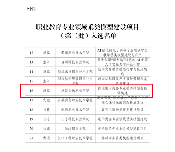 近日,教育部职业教育发展中心发布《关于公布教育部职业教育发展中心职业教育专业领域垂类模型建设项目(第二批)入选名单的通告》,我院申报的《跨境电子商务专业垂类模型智能体构建》项目凭借扎实的专业基础、创新的设计理念与突出的实践价值,在众多申报项目中脱颖而出,成功入选!