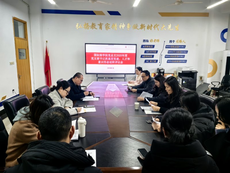 为进一步压实基层党组织书记履职管党治党政治责任,提升学院党建工作质量,1月19日,国际商学院党总支召开2025年度党支部书记抓基层党建、人才和意识形态述职评议会。学院党总支书记洪伟、党总支副书记蔡颖华出席会议,全体党支部书记参加会议。会议由洪伟主持。